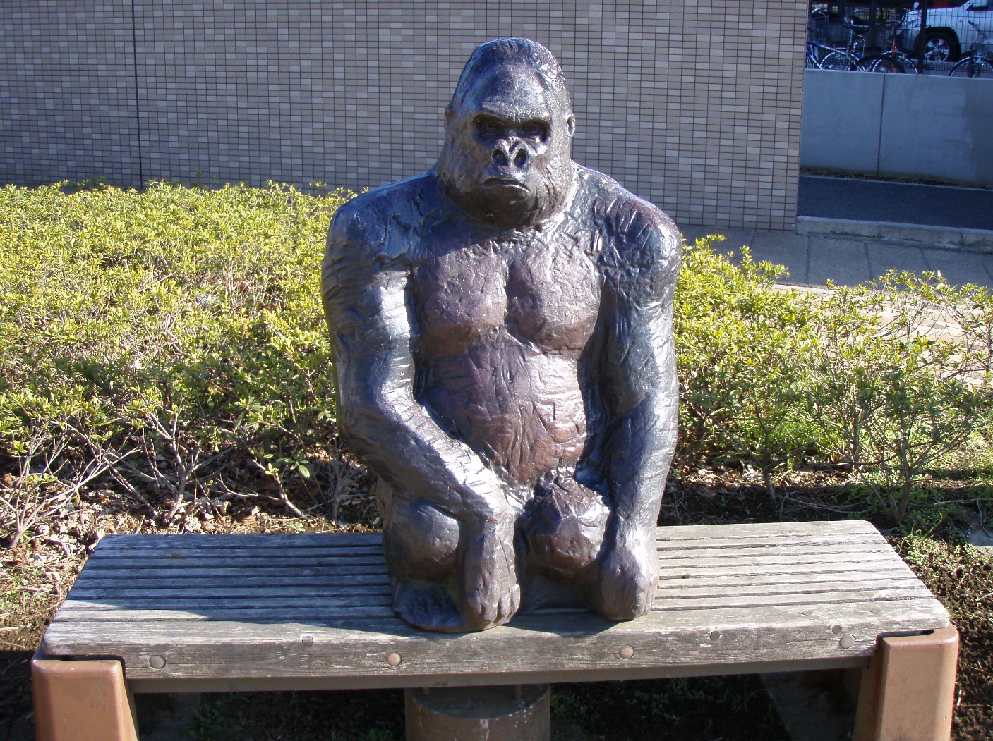 近くにあったベンチですが…なぜゴリラ?