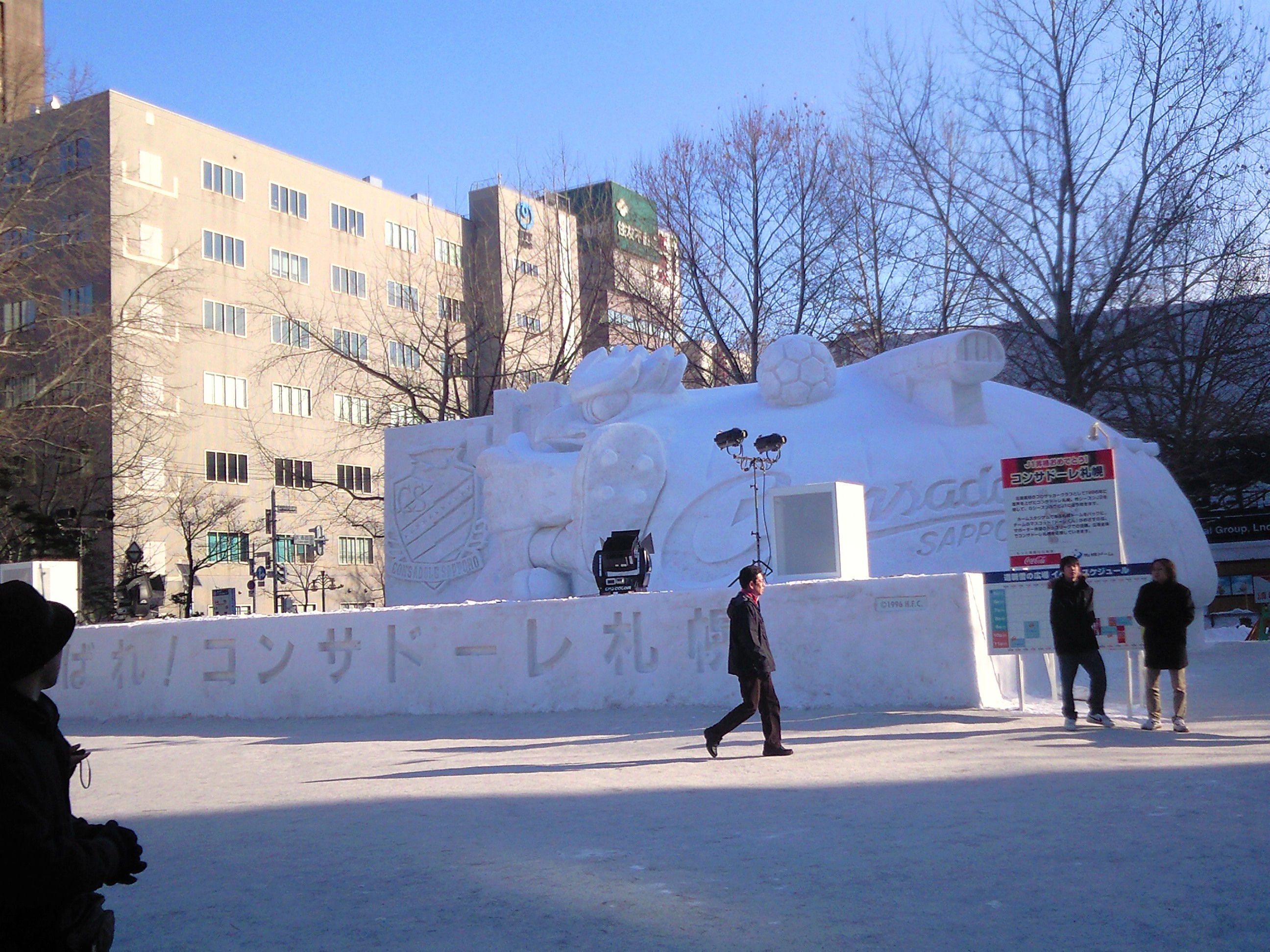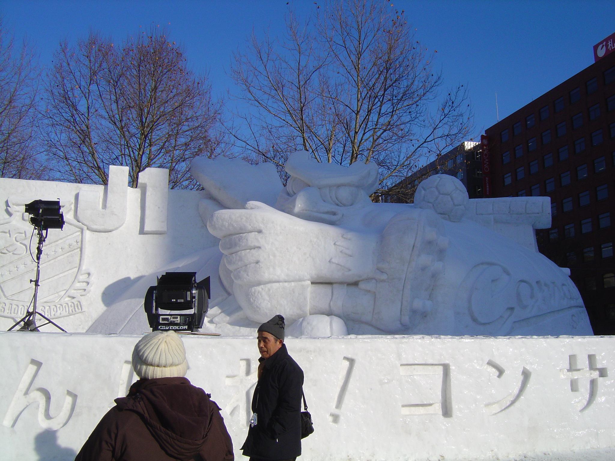 今年からJ1に復帰するコンサドーレのマスコット、しまふくろうのドーレくんの大雪像が作られたと聞き、マスコット好き(ドーレくんをメインとした、Jマスコットブログ開設中のものです;;)としてはたまらなく見たいのですが、今年はどう頑張っても見に行くことができません;; どなたか見てきていただけたら幸いです。 ついでに西4丁目会場に出店しているグッズショップも見てきて、どんなものが売っていたか見てきてもらえると尚嬉しいです。 2/9、/10にはコンサドーレ雪像でイベントも行われますので、マスコットマニアの方はその際を狙われると尚いいかな?と。 何はともあれよろしくお願いいたします!!