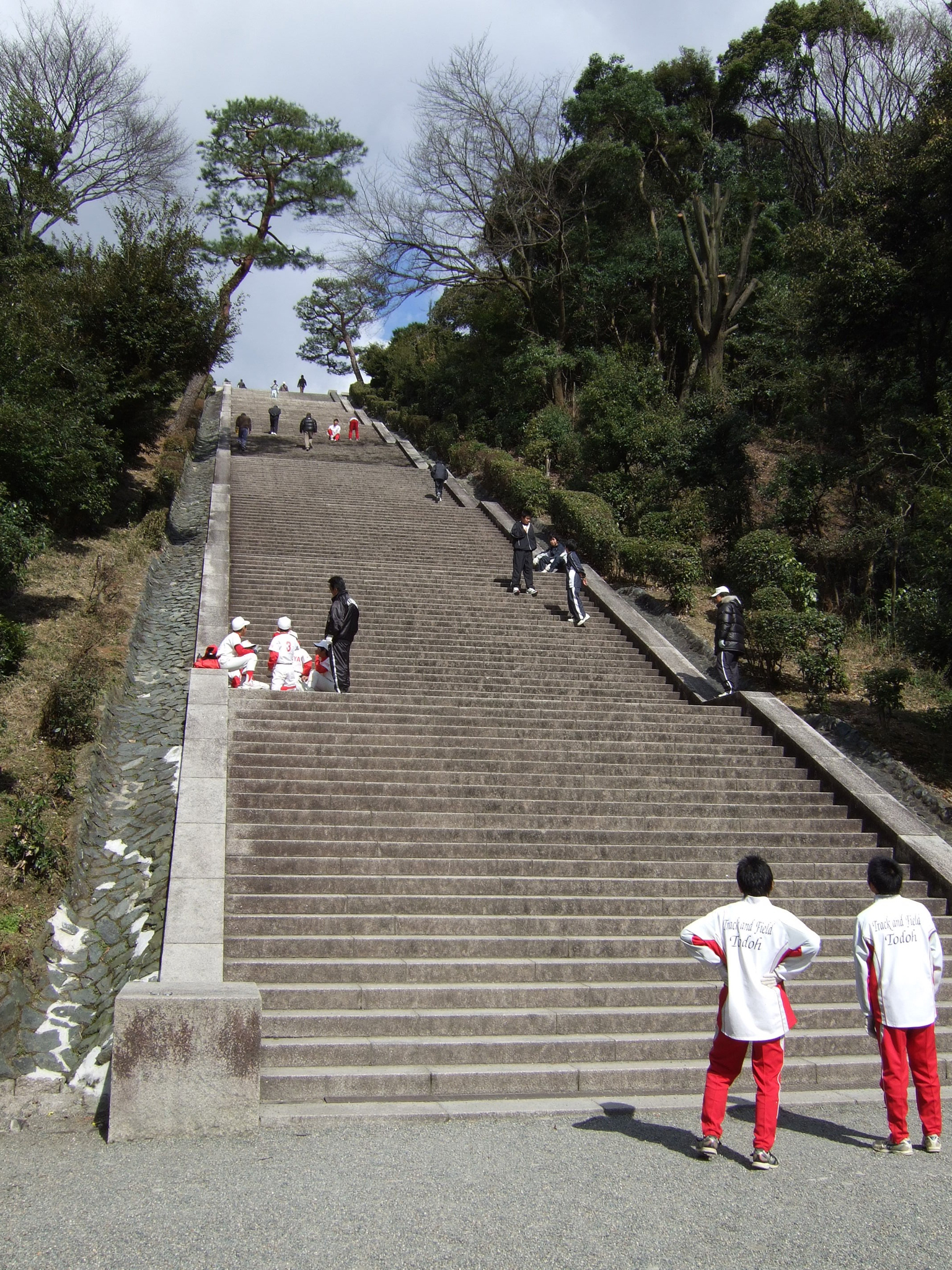 伏見区の通称『御陵さん』の中にある長ーい急な階段、高校の時クラブで週末や年始に必ず練習で登らされてました。 今でも見たら当時の辛さを思い出すのですが怖いもの見たさに20年ぶりに見てみたいのです。今は結婚して子供ができ、中々見に行くことができません。どなたか見てきていただけませんか?よろしくお願いします