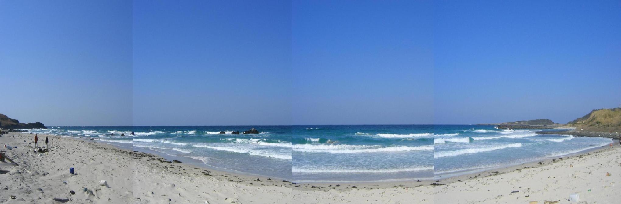 2008 3/1 丁度行ってきました。 冬の海ということでしたが、この日は大変天気が良く 小春日和の海になってしまいました。 初めて訪れたのですが、本当に綺麗です。 風が強く波も高く、冬の厳しい表情も楽しみです。 写真は「しおかぜコバルトブルービーチ」です。 浜辺の雰囲気を再現したく繋げてみましたが、 余計わかり辛くなってしまったらすみません。 遠くから見て頂けると繋ぎ目が目立たない・・と思います。