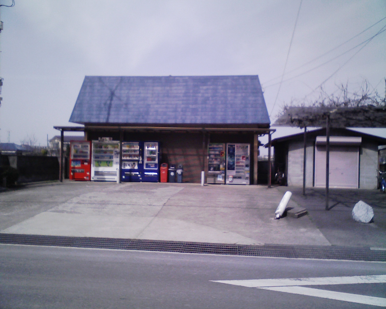 駄菓子屋さんの建物は健在で,ジュースなどの販売機も何台かあって稼働中でしたが,店自体が営業しているかは不明です。撮影したのは日曜日ですが,学校が開いている平日は営業しているのかもしれません。