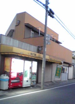 1軒目よりバス道路寄りにあった、2軒目。 シャッターは下りていましたが、宅急便ののぼりが立っていたので営業しているのかもしれません。 黄色いひさし、自販機の上あたりに「HALFTIME」、電柱はさんで右側には「千葉ウインドサービス」とありました。 ・・・あんまり商店っぽくないですね(汗) 実はもう一軒、もっとバス道路寄りに(先ほどの道からバス道路に出る手前で小さな谷っぽくなってる、その底)商店がありましたが、暗くなってきて撮影に失敗orz そちらは営業中で、でっかく「いのはな」と看板がありました。 「いのはなストア」とかかな? ご希望でしたら、また見に行ってきます。