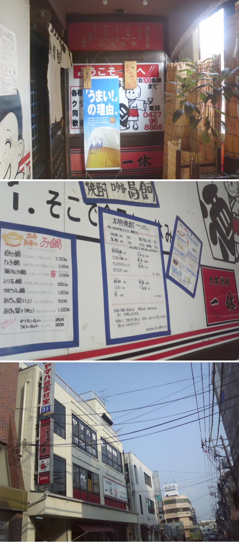 この件に関しまして調査をしてみました。 おおよそ20年10年前の地図で調べますと、ご指定の位置よりやや駅寄りの所に 「一休」という居酒屋があることが判りました。 現在その場所は「和厨房 とも蔵」という別の居酒屋になっております。 一休というのがどのような店だったのかは把握できてはおりませんが、少し離れた 成瀬に「大衆酒蔵 一休」という居酒屋が20年以上前から駅前にあり、その店の 看板も橙色っぽい赤です。またメニューに湯豆腐もあったりもします。 この一休は数店舗支店を出されてるので、もしかしたらこの一休と関係あるのかも しれません。(全く関係ない可能性もあります。) ただ、都内に多数チェーン展開されている「居酒屋一休」でないことは確かです。 成瀬の一休の写真を一緒に上げておきますので、どうか御判断下さい。