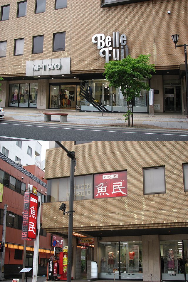 外からのみですが、東急インを見てきました。 1FにはM-TWOというブティックが入っていて、オッサンの私には前を通るのが精一杯でした。 2Fでは魚民が営業していましたが、車だったので飲むわけにも行かず、断腸の思いで入店を断念しました。 ちなみに、B1FにはカラオケBOXがありました。その他のテナントは店舗募集中のようです。