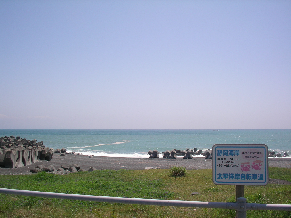 前に撮った「モラトリアム」っぽい、うららかな天気の時の写真がありました。ここには写っていませんが、親子連れやカップルがのんびりモラトリアムしていた記憶があります。 撮影場所は、大谷川の河口付近です。ちょうどいいぐあいに、写真右下に「静岡海岸」という看板が写っているので、「証拠」になりますかね?