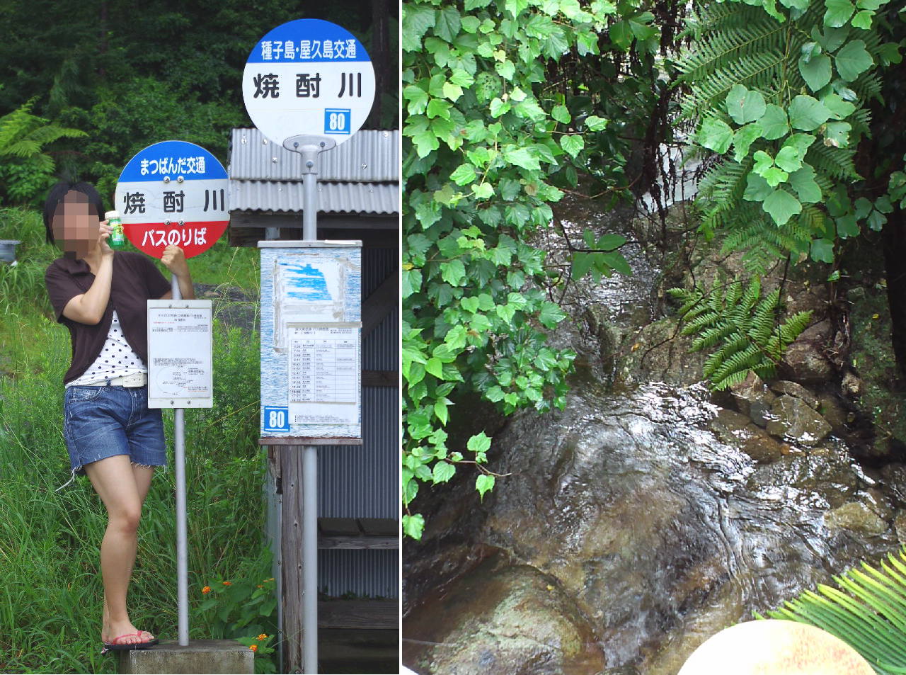 数年前 大阪からバイクで屋久島を訪れた際、『焼酎川』という名のバス停を発見しました。