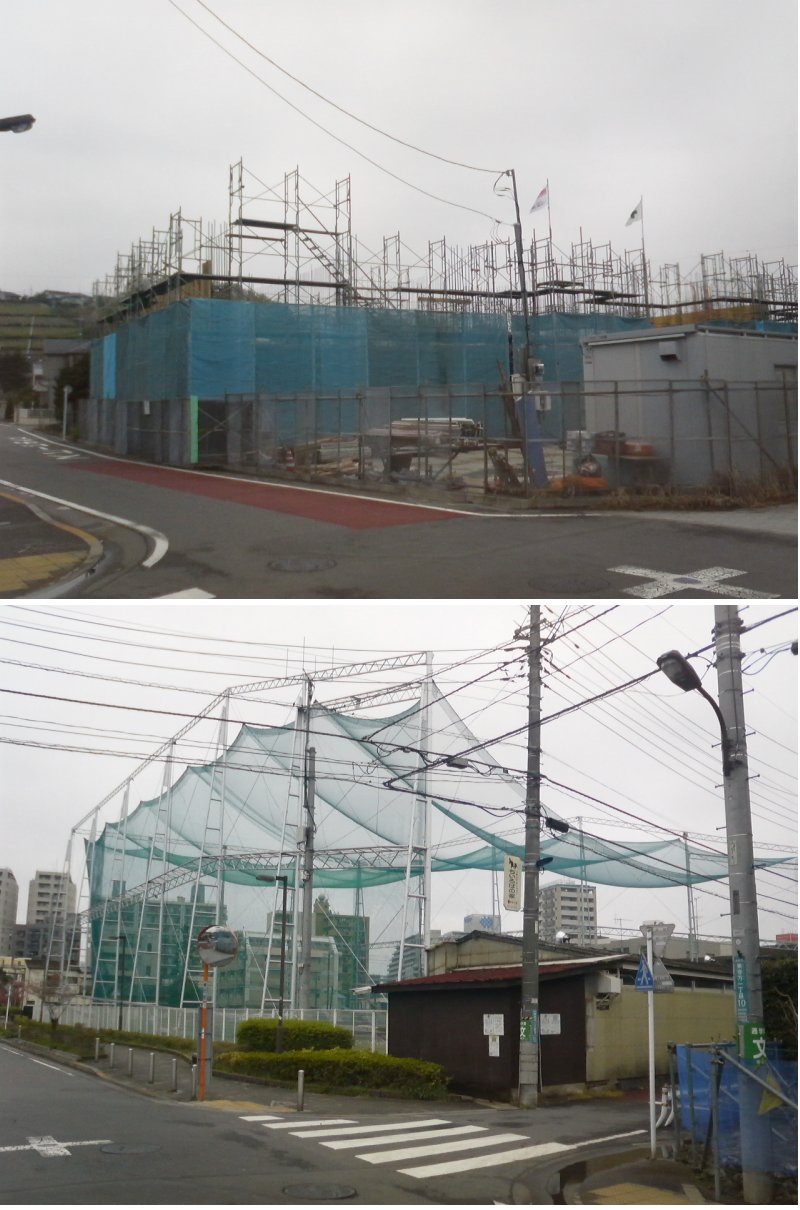 調査の上、現地へ行って見てきました。 先にご依頼のアパートですが、3階建ての「冨久屋コーポ」で宜しいでしょうか? こちらはゴルフ練習場「桜ヶ丘グリーンクラブ」の斜め向かいにありましたが、 1・2年程前に解体され、現在は「(仮称)コーポ冨久屋」というマンションが 建設中となっております。 最近完成したマンションがこのゴルフ場付近には見当たりませんでしたので、 こちらだと思いますが、もし違ってましたらまた調べ見てきますのでご指摘下さい。