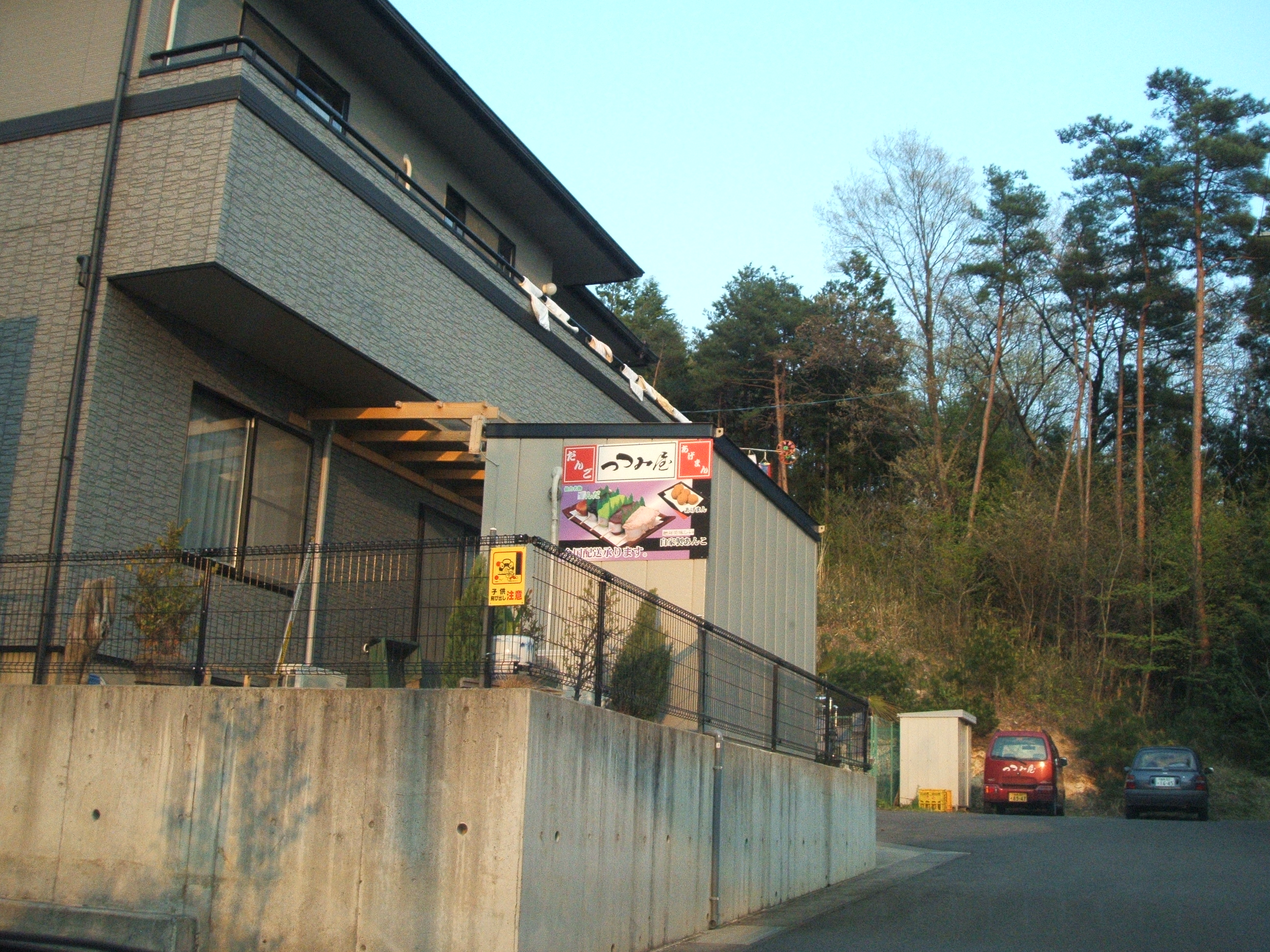 とりあえず、文中にあった「だんご」の看板の矢印に従って坂道を登ります、坂を上りきったあたりに添付した写真の家があります。 どうやら「つつみ屋」というだんご屋さんの様です。 まだ食べたことはありませんが、今度言ってみようかと思います。