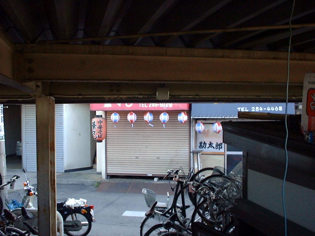 あきらめて、帰りの電車を待っているとき、あれでもと思いホームから見ましたら、「華々し」という看板が目に入りました。でも、丁度駐輪場が邪魔をして、上の看板と入口しか見えませんでした。だから写真も全景は撮ることができませんでした。午後3時頃で、まだシャッターは降りていましたが、提灯や生ビールの立て看板がありますので、営業はされていると思います。