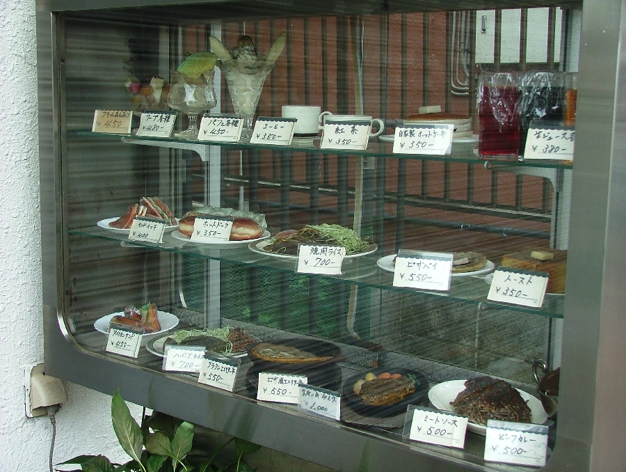 見てきました。お店の外に、確かにサンプルケースがありました。 yuconさんが見ていた当時の物でしょうか?いくぶんパンチ効いてます。