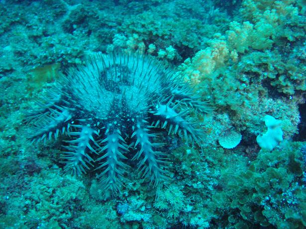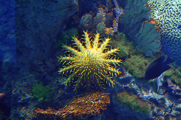 一昨日、海遊館に行ったところ水槽の中でとんがってました。(オニヒトデ?) きっと「ジンベエザメばかり見やがって!」とやさぐれてたんだと思われます。