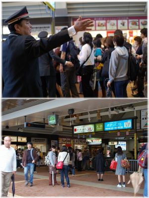 雨が降っていたからかもしれませんが、全く動けないということはありませんでした。 でも確かに普段よりは混んでいるようで、駅員さんの誘導がありました。
