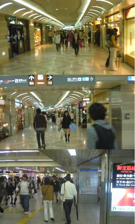 難波駅の地下街、見てきました。 私はこのあたりの事をここ数年しか知らないのですが、おそらく昔と比べてかなり変わったのではないでしょうか。 携帯電話からの写真で見づらいですが、上の2枚は地下鉄四つ橋線のなんば駅と御堂筋線のなんば駅の間の地下街です。一番下の写真は地下鉄御堂筋線のなんば駅周辺です。 昔の面影が残っていたらと思います。