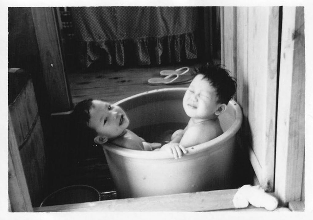 最後はおまけで、アパートでの生活:夏のたらい風呂です。 当時、風呂場はスペースだけ用意されていて風呂桶は自前で用意するスタイルだったそうですね。 狭い風呂場の左側に風呂桶が見えます。 奥のカーテンは、台所だったそうです。狭っ!! 関東でも、40年前はのどかだったんですね〜