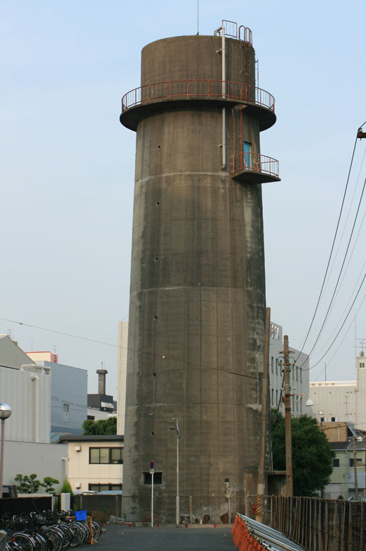 以前新幹線に乗っていて、新大阪駅を過ぎた辺りに、 かなり年季の入った、円筒状の構築物を見かけました。 恐らく給水塔だと思います。 この辺りに住んでいる方で、見てきていただけたら有り難いです。