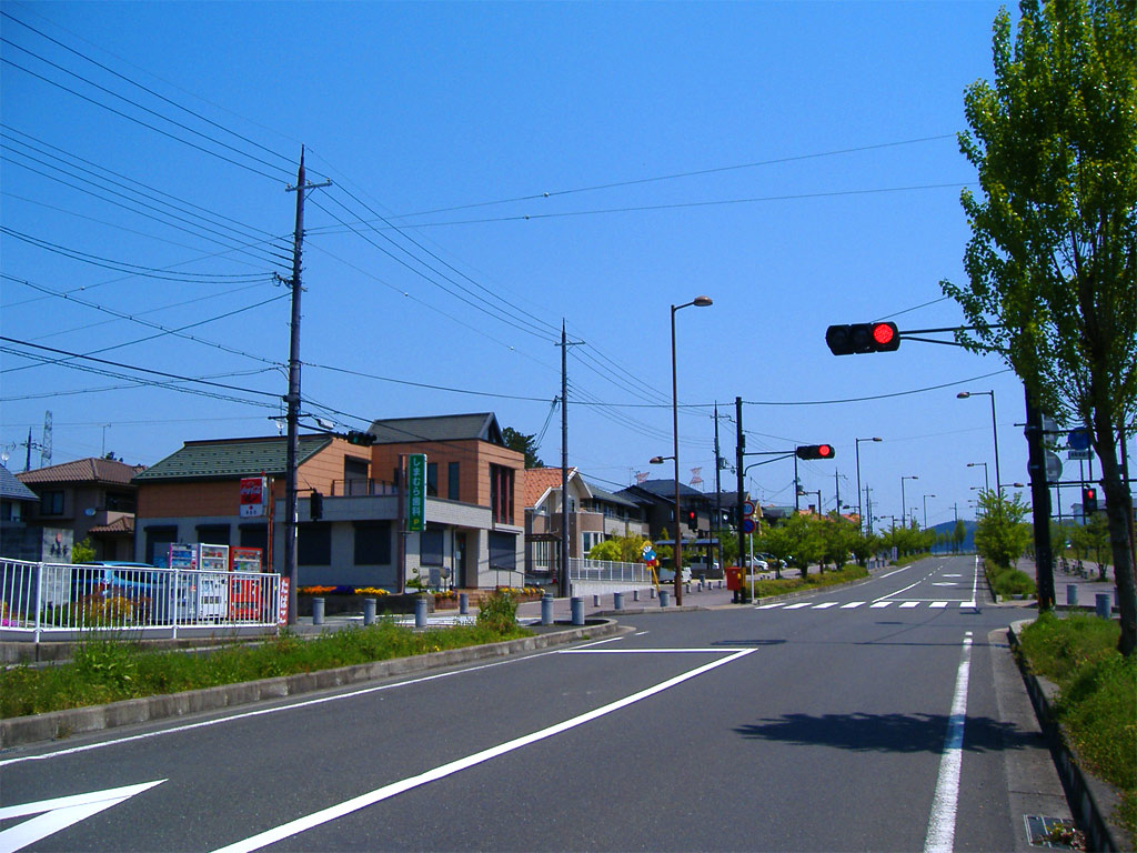 綾部駅から徒歩40〜50分のところにありました。あと、非常に閑静でした。 大手住宅メーカーののぼり、広い歩道、街路樹、バス停、「好評分譲中」と書かれた看板、「あおぞら公園」「せせらぎ公園」という公園などがあり、いかにも新興住宅地という感じでした。 新興住宅地好きの私も大満足の閑静っぷりで、もしも綾部市に住むならこういうところに住みたいと思わせるようないい雰囲気でありました。