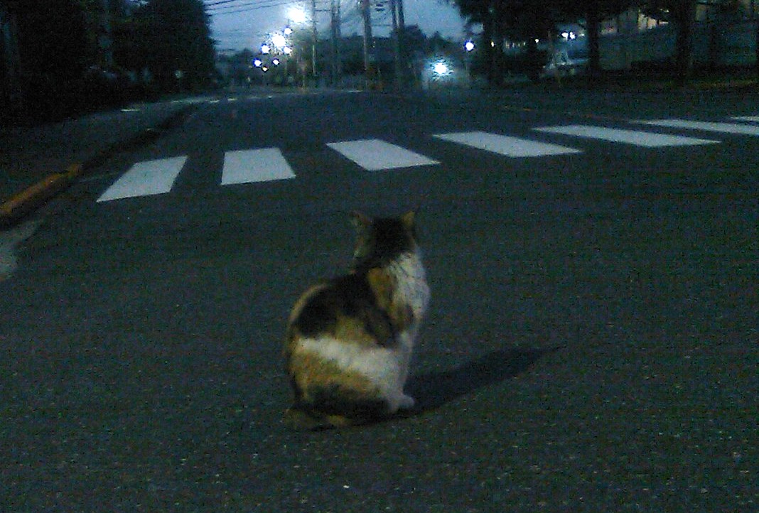 久しぶりに行きましたが、守衛猫は健在でした。 怪我も無く、元気に守衛してます。 (日暮れ後に撮ったので、見辛くてすみません。) 10年以上前から居るらしいのですが 今何歳なのか、誰も知りません。 これからも元気でいて欲しいです。