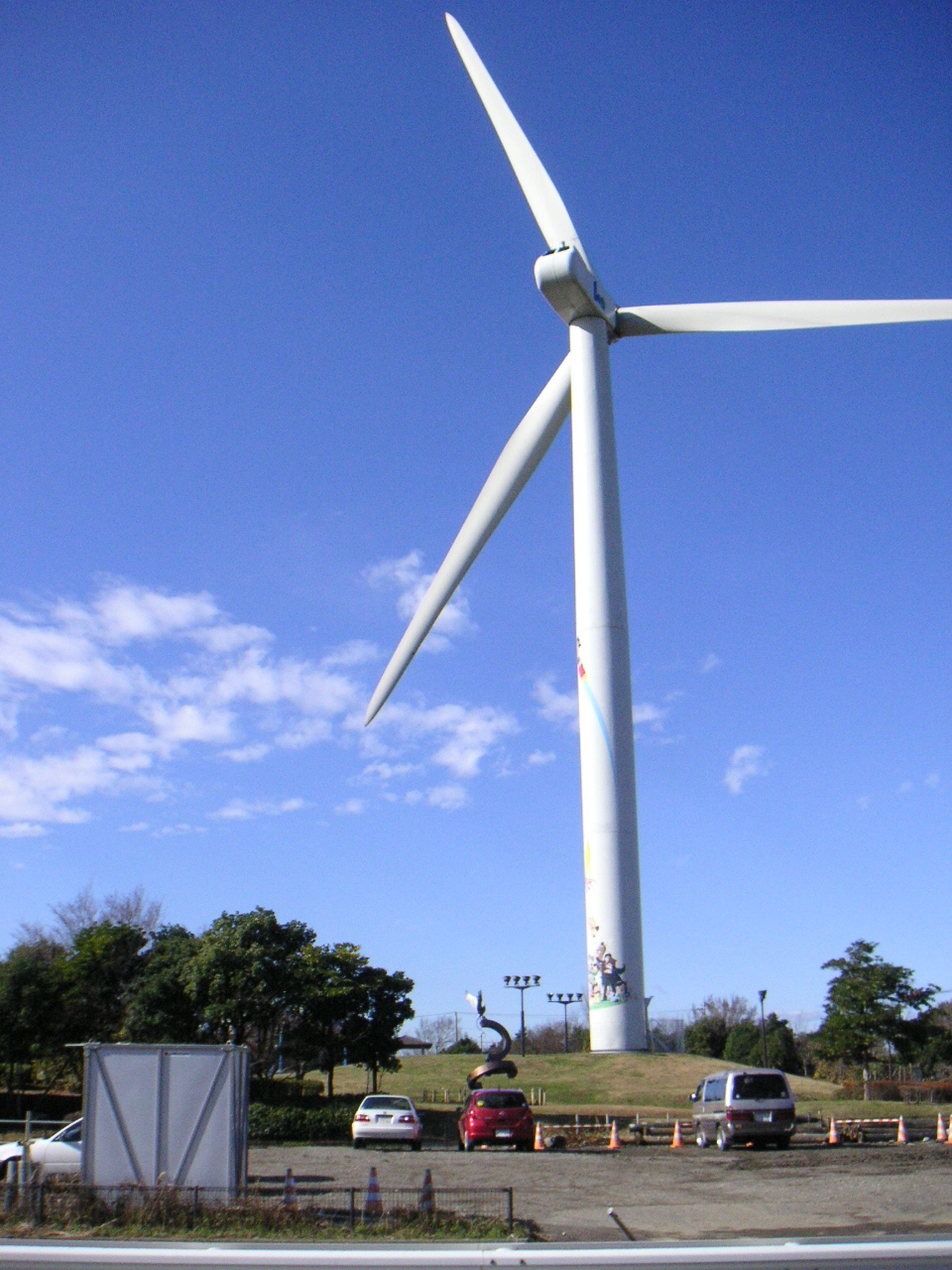東京に勤めていた頃、毎朝、通勤電車の窓から眺めていた巨大な風車です。風を受けてグルグルと頼もしく回っている日もあれば、動いていないときもありました。 いつか、もっと近くから見たいと思っていましたが、東京を離れた今では、叶わない夢となりました。 どなたか見てきていただけないでしょうか?