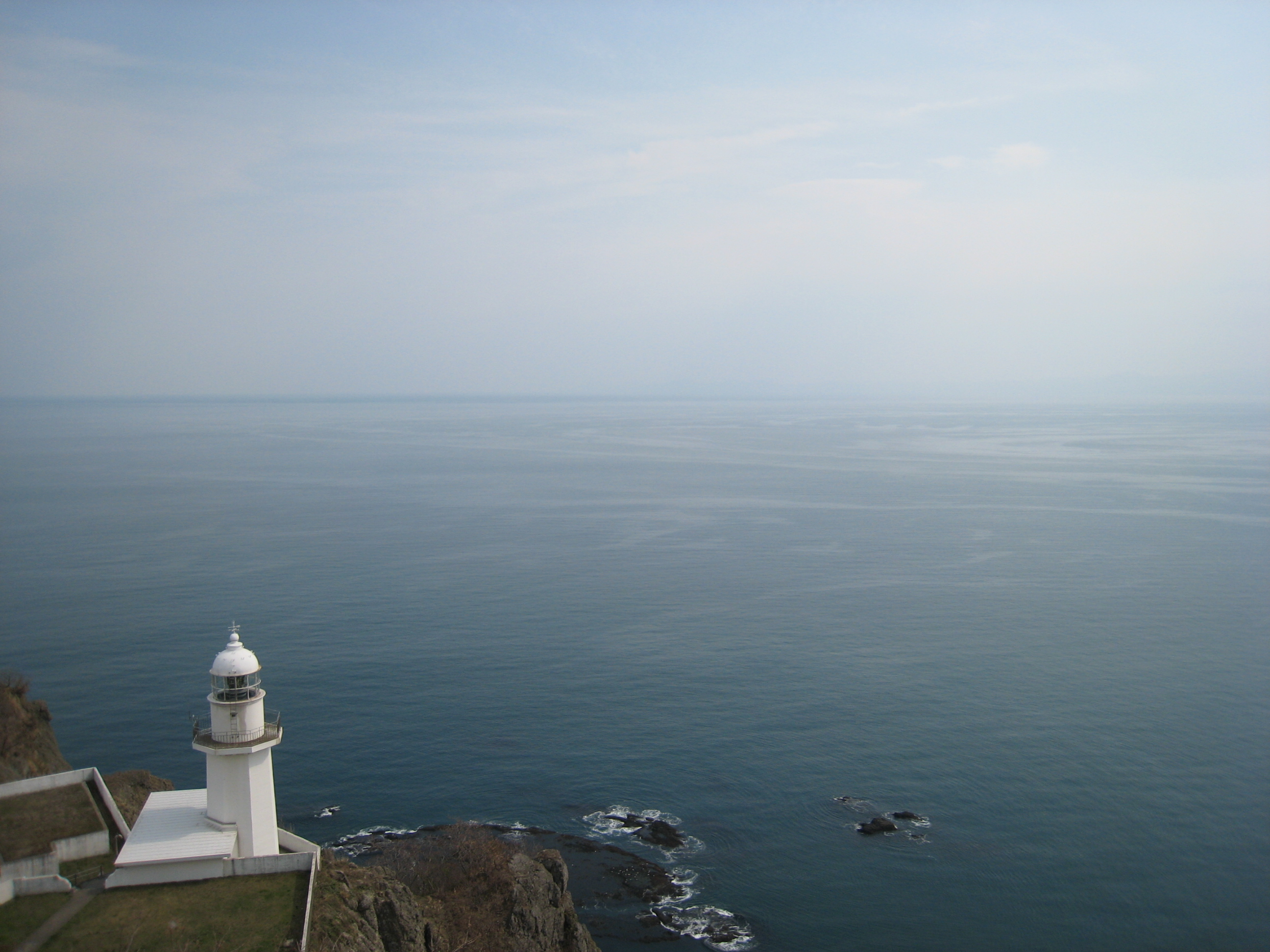 室蘭は霧が出ることも多いので、濃霧の時は足元の断崖絶壁から先に何があるのか全く見えないこともありますが 天気が良ければこの絶景です。 地球という球体の表面に立っていることを実感できます。