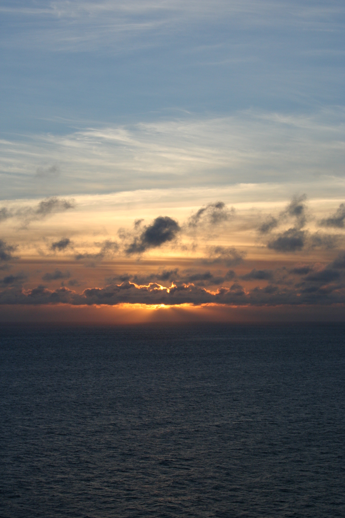 もうお礼も出ていますが、折角撮れたので投稿します。 2010年5月2日の夕日です。水平線付近は雲が出ていたので 水平線に沈む所は見れませんでした。 与那国島の「日本最後の夕日が見える丘」から見た夕日です。
