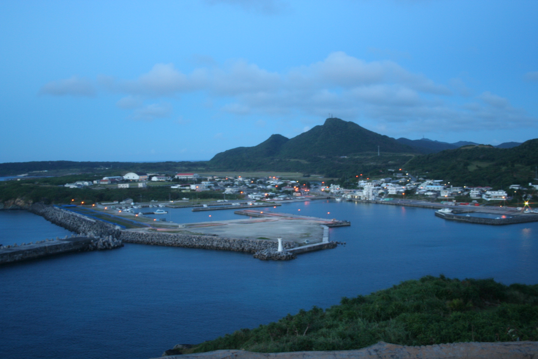 引き続き、地図にもあるナーマ浜、フェリー乗り場を最西端の碑のそばから撮ったものです。もうすぐ夜になるところです。