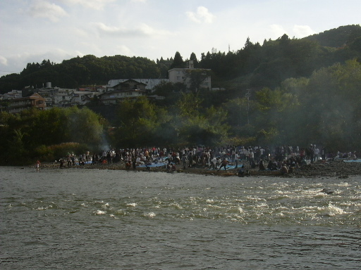 ありがとうございますー!芋煮万歳! 人の密集ぶり(立ったまま)、煙の立ちこめ具合と、やっぱり芋煮と言ったらここですね。河原ずいぶん狭まってるのに、場所取りのテントとかもちゃんとあって、さすがです。この増水じゃ、川に飛び込む人はいなかったでしょうねー。 ありがとうございました!