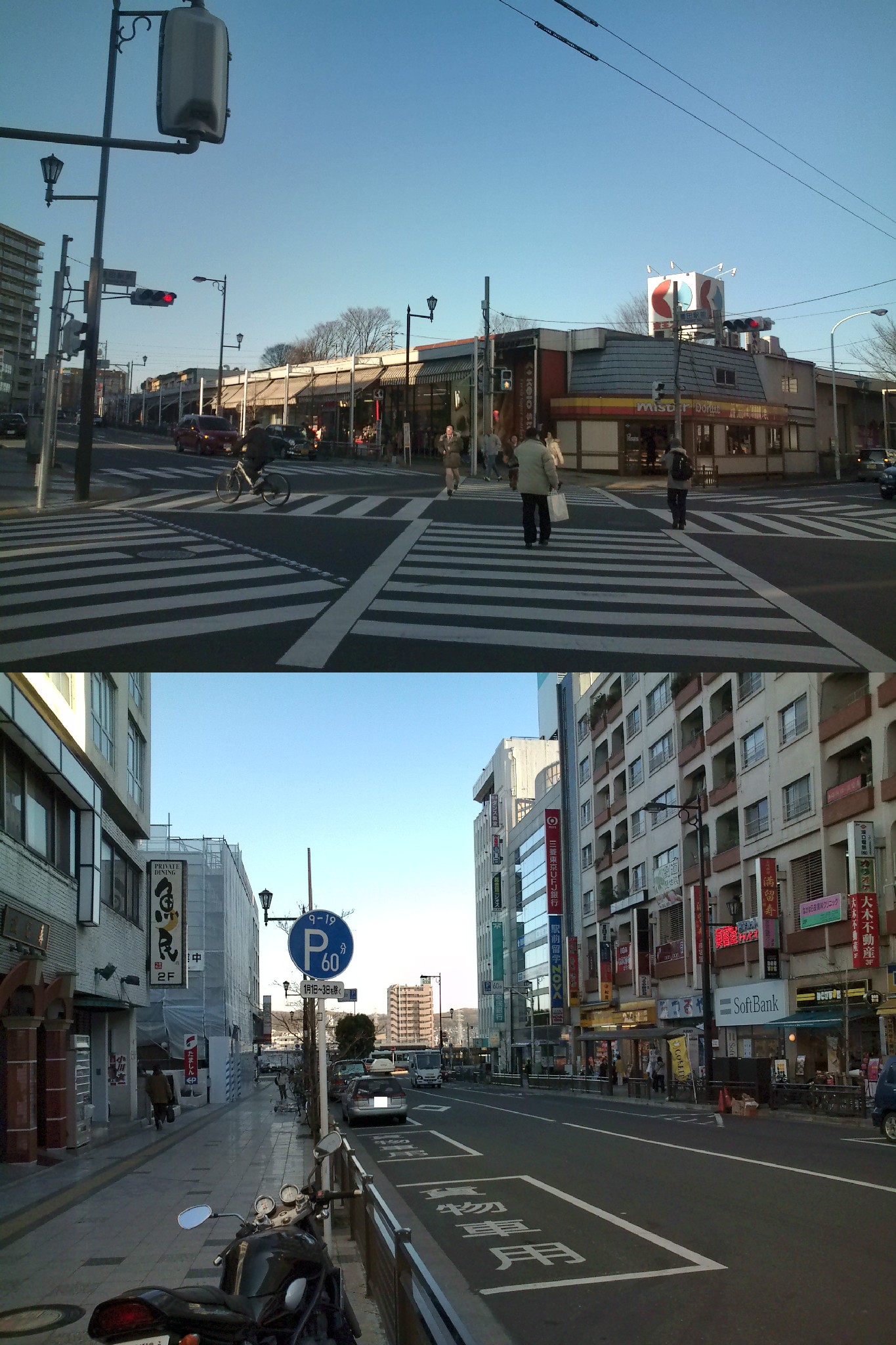 交差点と交差点からの豊田駅方面です。