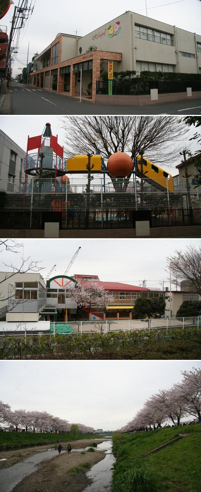 あと、一番下の写真は、幼稚園とは関係なくて、溝沼を流れている黒目川の写真です。4月4日の日曜日に行ったのですが、お花見の人でいっぱいでした。