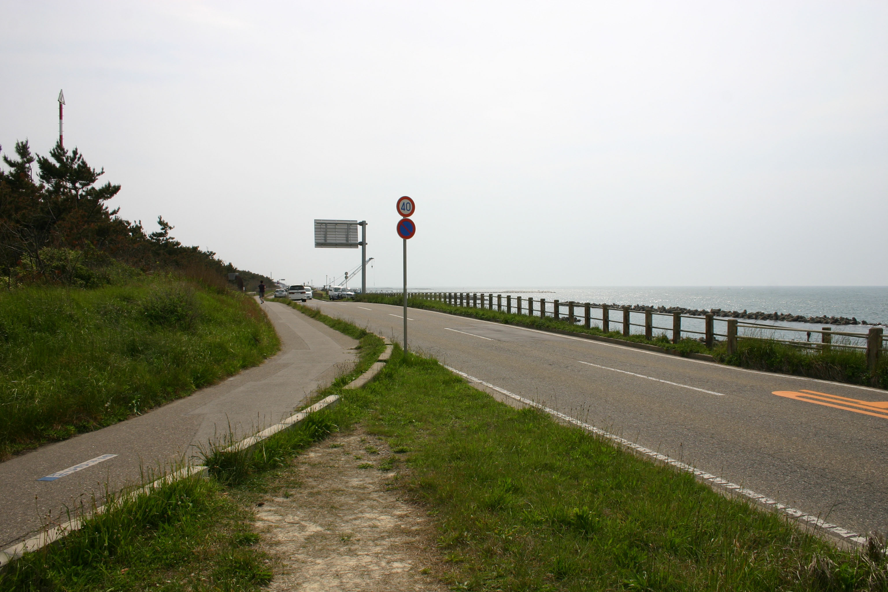 ちょっと曇っていたので、海や空が新潟グレーになってしまっていますが、こうでした。 日頃、普通に通っている道なので、普段はなんとも思わずに走っていますが、 そのように思われるくらいのいい道なんだと思うと、また違って見えてきます。