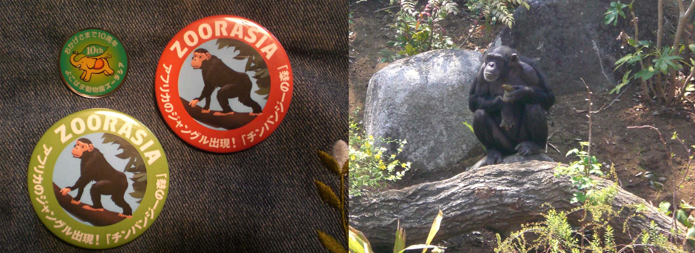ありがとうございます。 缶バッジ写真、むしろ施設よりもレアではないでしょうか。 見せて頂き大変嬉しく思います。同時にうらやましいです。 チンパンジー写真から見るに、なかなか良好な施設のようですね。自分も早く行きたいものです。GW関係なく仕事なのでがっかりしています。