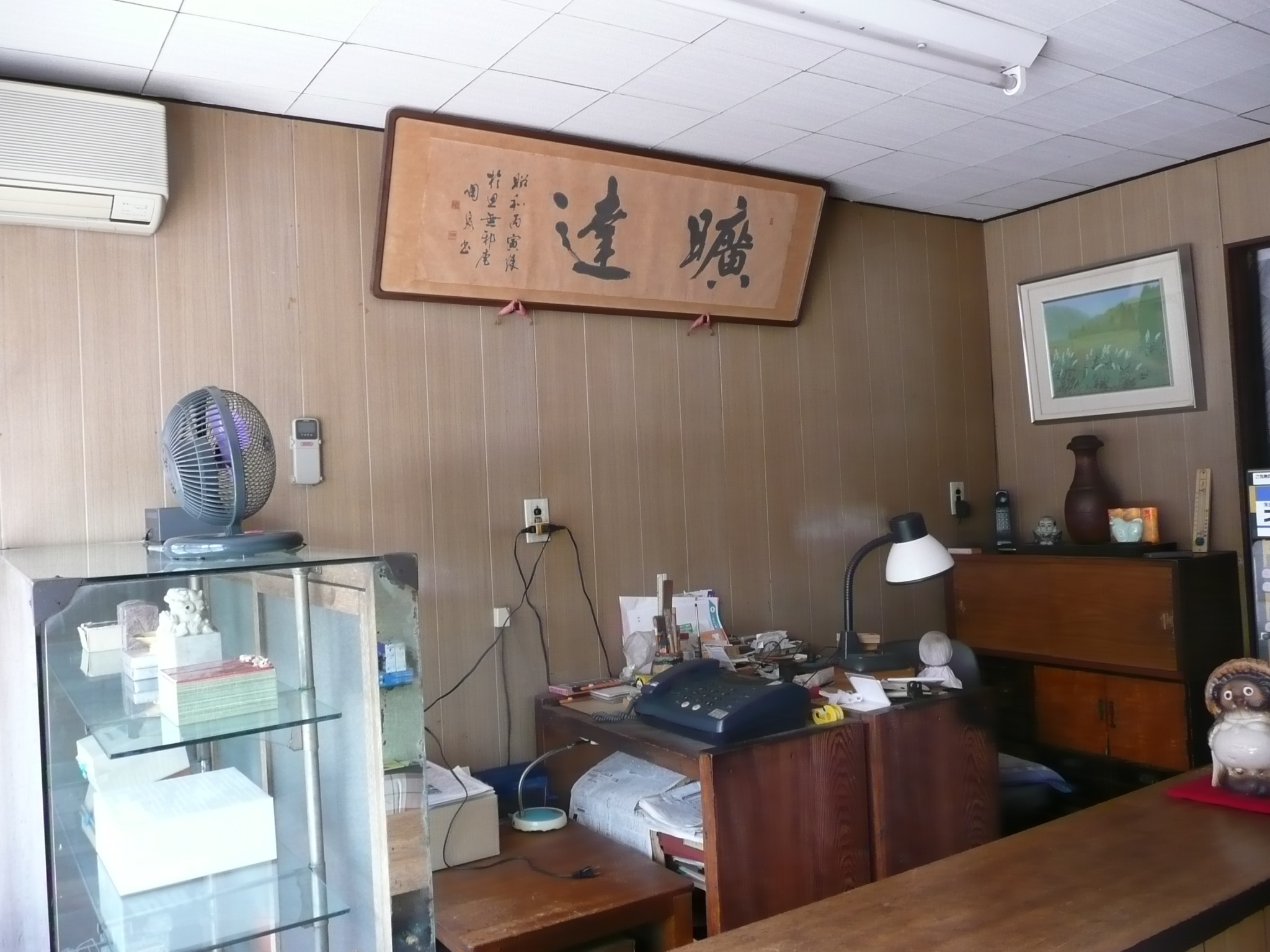 店内の様子も撮らせていただきました。店名のフォントの事は訪き忘れてしまいましたが、額装された書は店主の手によるものだそうです。判を作る用事が無いのが残念になる位良いお店でした。