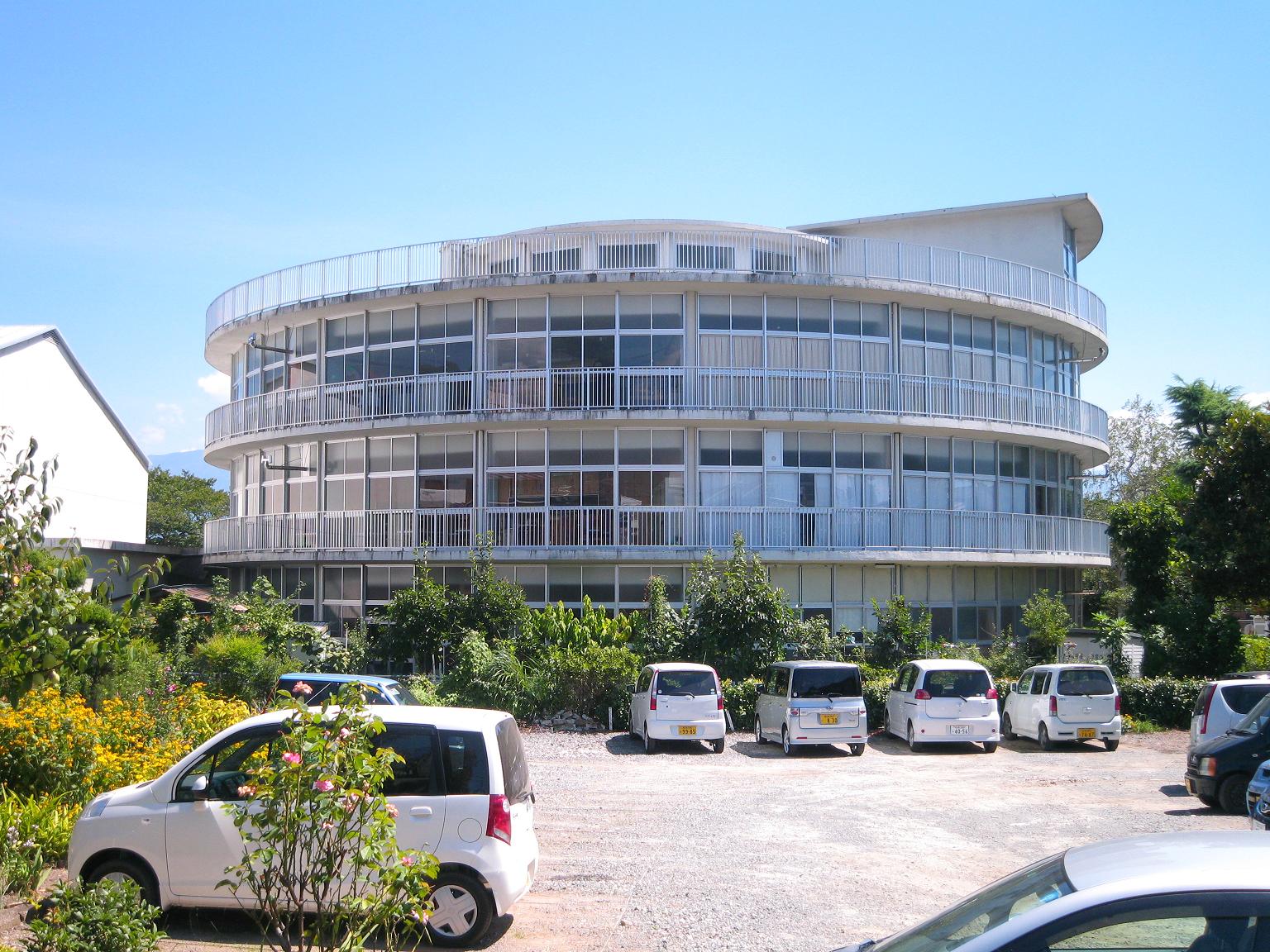 円筒校舎の写真を撮ってきました。 警察署側の駐車場からです。 中々面白そうな建物でした。 飯田の市役所も円筒形でした、飯田は円筒形が好きなのかな。