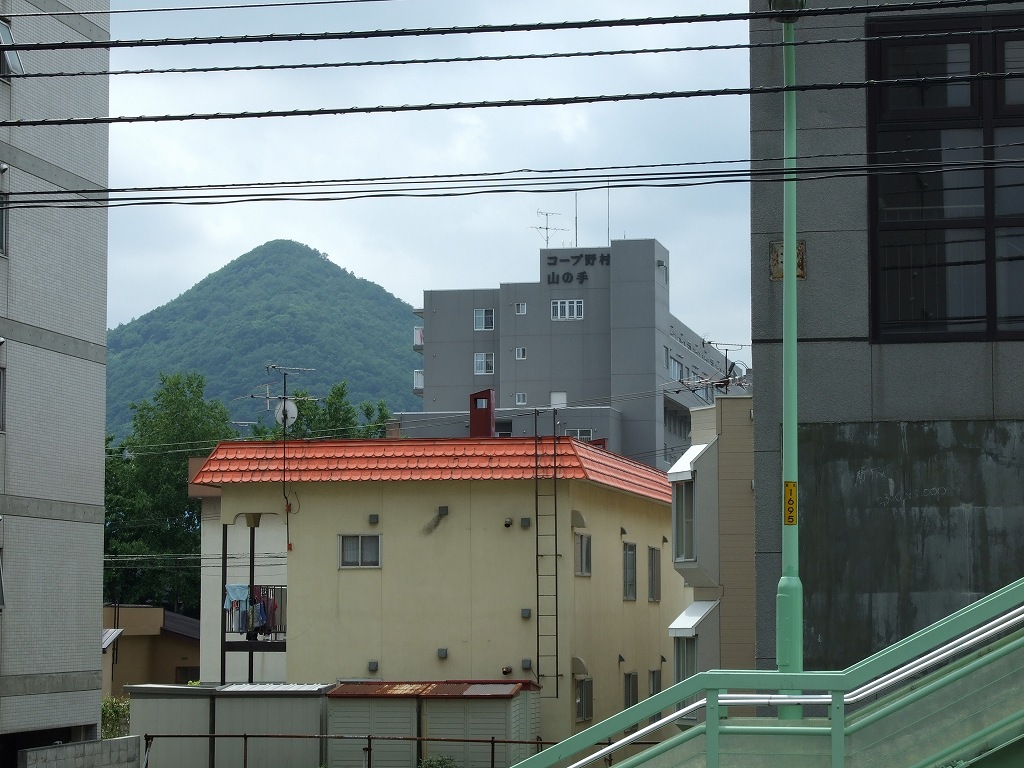 家が建ってしまっていて、歩道橋の上からは三角山は見れなくなっていました。 階段の途中からは見えましたよ〜。