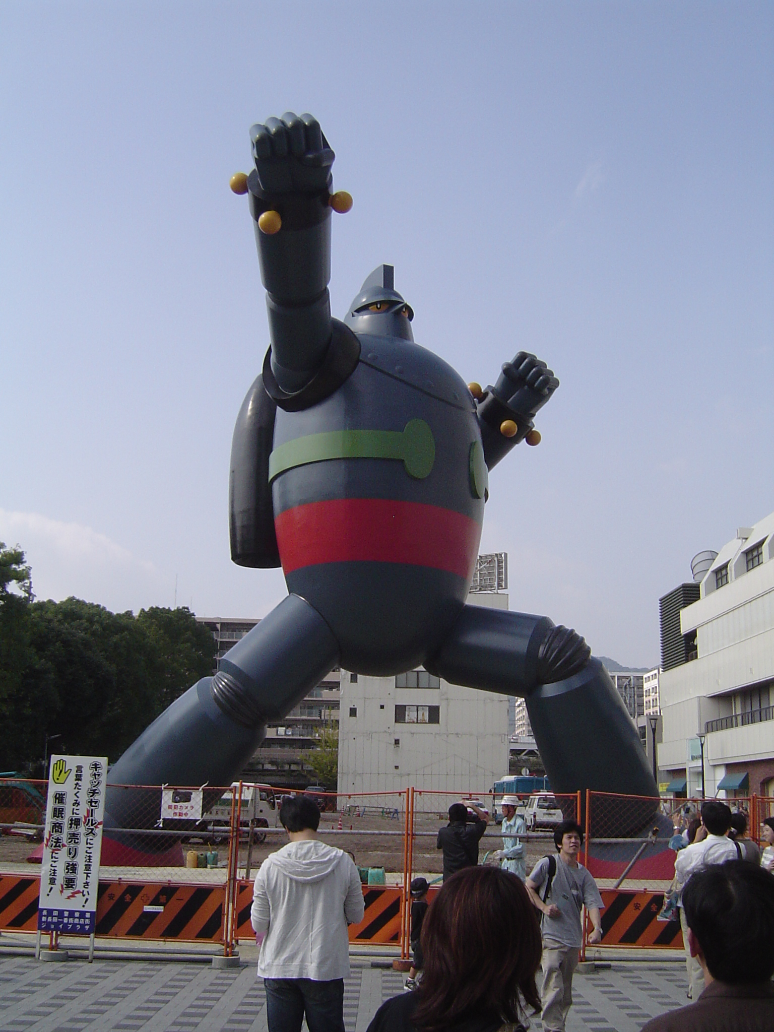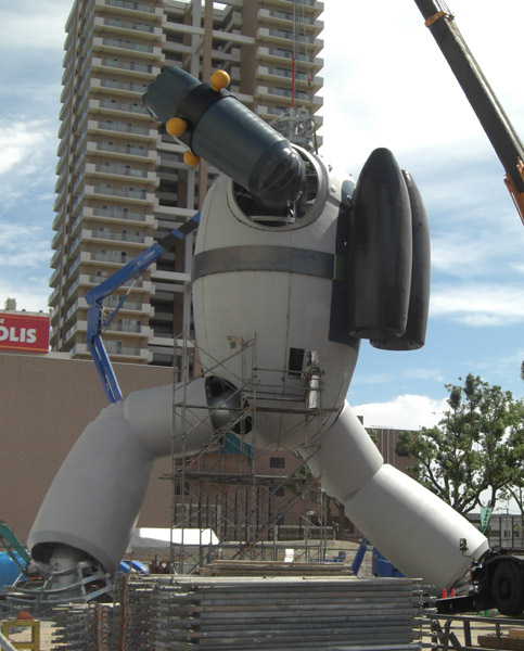 9月6日、見てきました。駅前でおまわりさんに鉄人はどこで作っているのか聞いたら「もうかなり組み立てられてますよ!」と教えてもらいました(あと、もちろん場所も)。 携帯で写真を撮ってる人も多かったです。ポーズついてるのがかわいいですね。