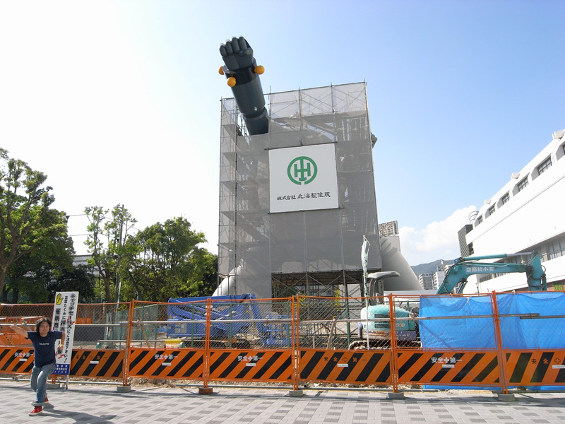 9月29日に作業用足場が撤去され、ついに鉄人が姿を現しました。雨に濡れて、ツヤツヤしています。