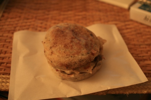 こちらでは今川焼といいますが、ここのは普通よりも皮がとても薄い。今川焼というよりも「薄皮のキンツバ」っていう風情。あんこたっぷりで美味しいですよ。