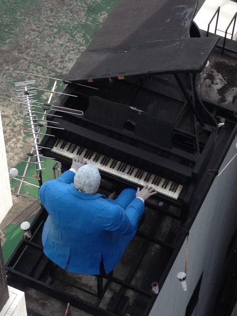 その名も「ピアノ運送株式会社」というピアノ運搬業者さんのビルの看板です。 投稿にあるとおり、近くにある橋の上から、ビルと高速道路の標識の支柱のあいだを縫うようにして見ることができます。 大手引っ越し会社からも委託を受けている、その筋では有名な会社で、テレビ東京系の番組「空から日本を見てみよう」でも、この看板をめざとく見つけたくもじいの訪問を受けていますね。