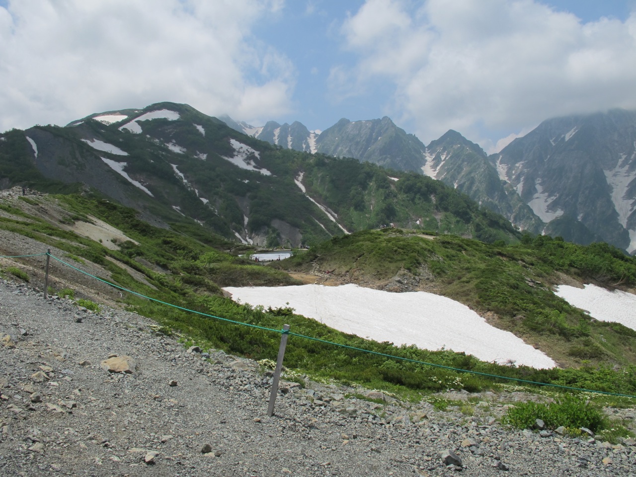 7月の八方池の写真です。奥の方にあるのが八方池です。 曇っていたので山は写せませんでした… 7月だとまだまだ雪が結構残っていました。 8月に入ると八方尾根は曇りor雨の日が多いような気がします。