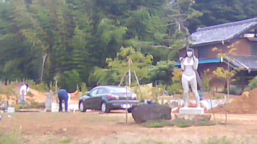 ここの信号を通過するとき、北本側に見えました。地鎮祭のように、四角く竹で区切られた中にビキニの女性像(しかも名のある彫刻家つくったようには見えない)が…。運転しながらだったので、己の目を疑い2度見することもできずじまい。1か月前ほどの話ですが、今もあるんでしょうか。
