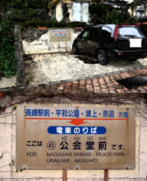 中学校の正門から運動公園の方向へ下ったところに、なぜか長崎電気軌道(路面電車)の「公会堂前電停」の看板があったのを覚えています。看板は、もしかすると民家の駐車場内にあったかもしれません。記憶が正しいかどうか、見てきてくれたらうれしいです。