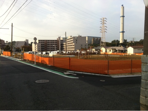 返信しなくちゃとずっと気になっていましたが、土日に機会がなく、どうしても昼間の写真を撮れないので、少し早起きして写真を撮ってきました。ここにどこかの会社の寮があったのを覚えていますが、ここのことでしょうか?向こうに数棟あった大きなNTTの社宅も無くなってしまったので写真ではわかりにくいかもしれません。(ピンとこないようでしたら、また撮影してきます)ここは現在、戸建用分譲地になっています。