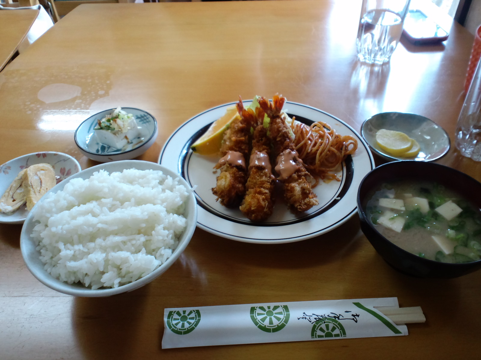 近所に住んでる大学生です! 友人と行ってきました。 おばちゃんは愛嬌があって素敵でした。 撮影日は8月ですが、鍋焼きうどんは無かったです。 秋冬限定でしょうかね。また行ってみたいと思います! 外からの写真は撮り忘れてしまったので、エビフライ定食ですいません。 また撮りに行きますね!