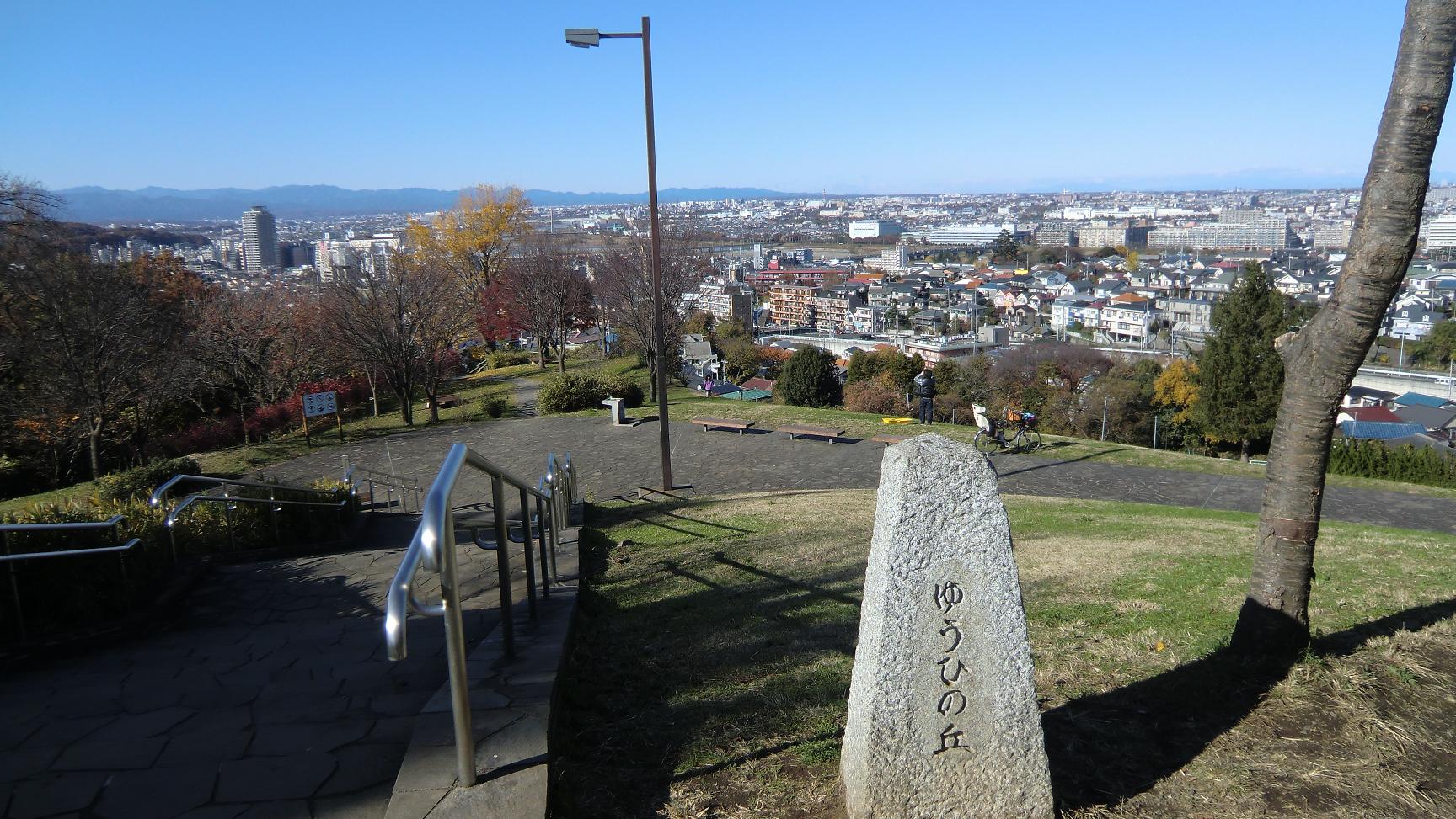 桜ヶ丘公園の中のゆうひの丘ですね。 前から一度行ってみたかったので、見てきました。 行ったのは昼間でしたが、夜景もきれいだと思います。 (近くの道を通るときに同じようなアングルで景色を見るので) ちょっと外灯が邪魔ですが、石碑の写っている写真を載せます。