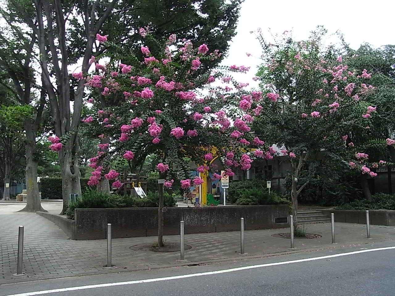 夏になると百日紅の花がきれいですよね。あいにく今は初冬でちょっとさみしいです。アスレチックはまだ健在ですよ。