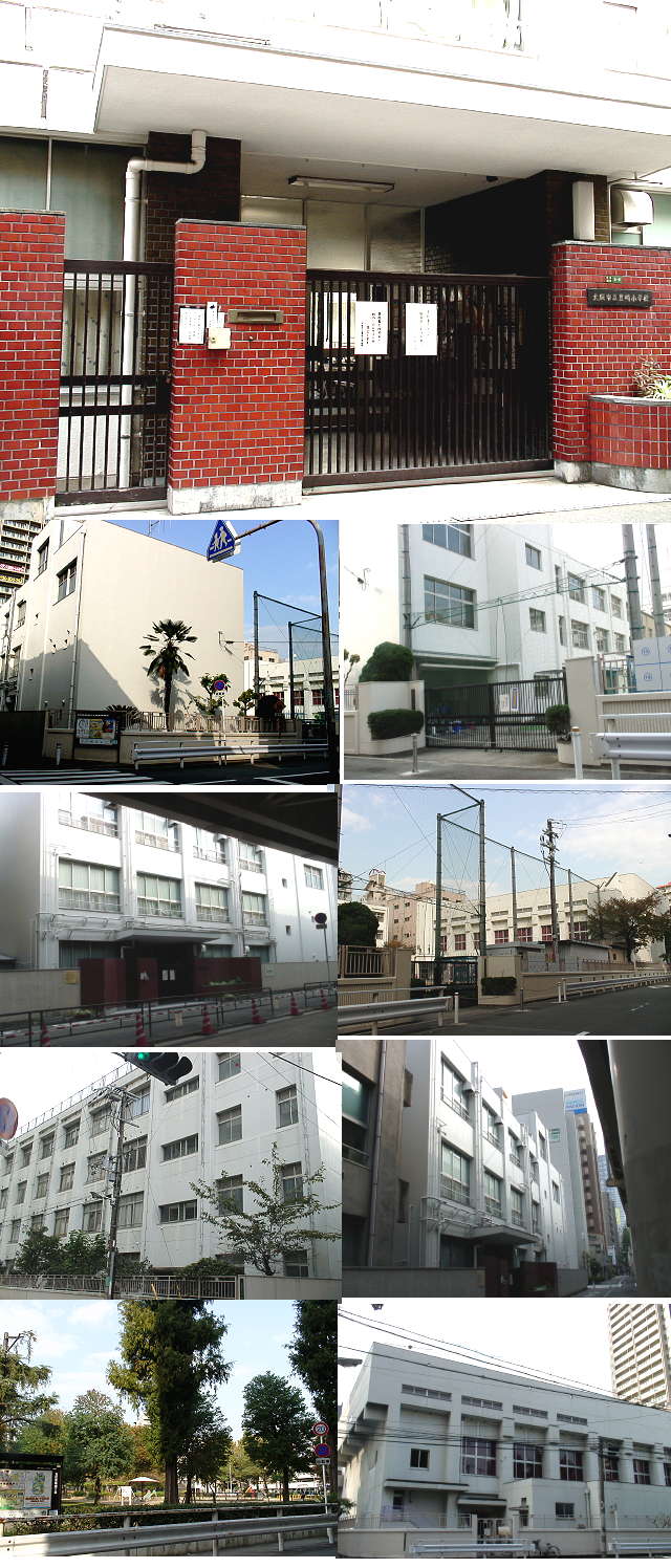 繁華街のすぐ隣で、敷地にギュッと詰まった感じの学校ですね。 不審者にならぬよう、少々遠景になりますが、 ご容赦ください。 学校のすぐ北側にタワーマンションが出来ましたが、 東側の公園の心地良さがほっとさせてくれます。