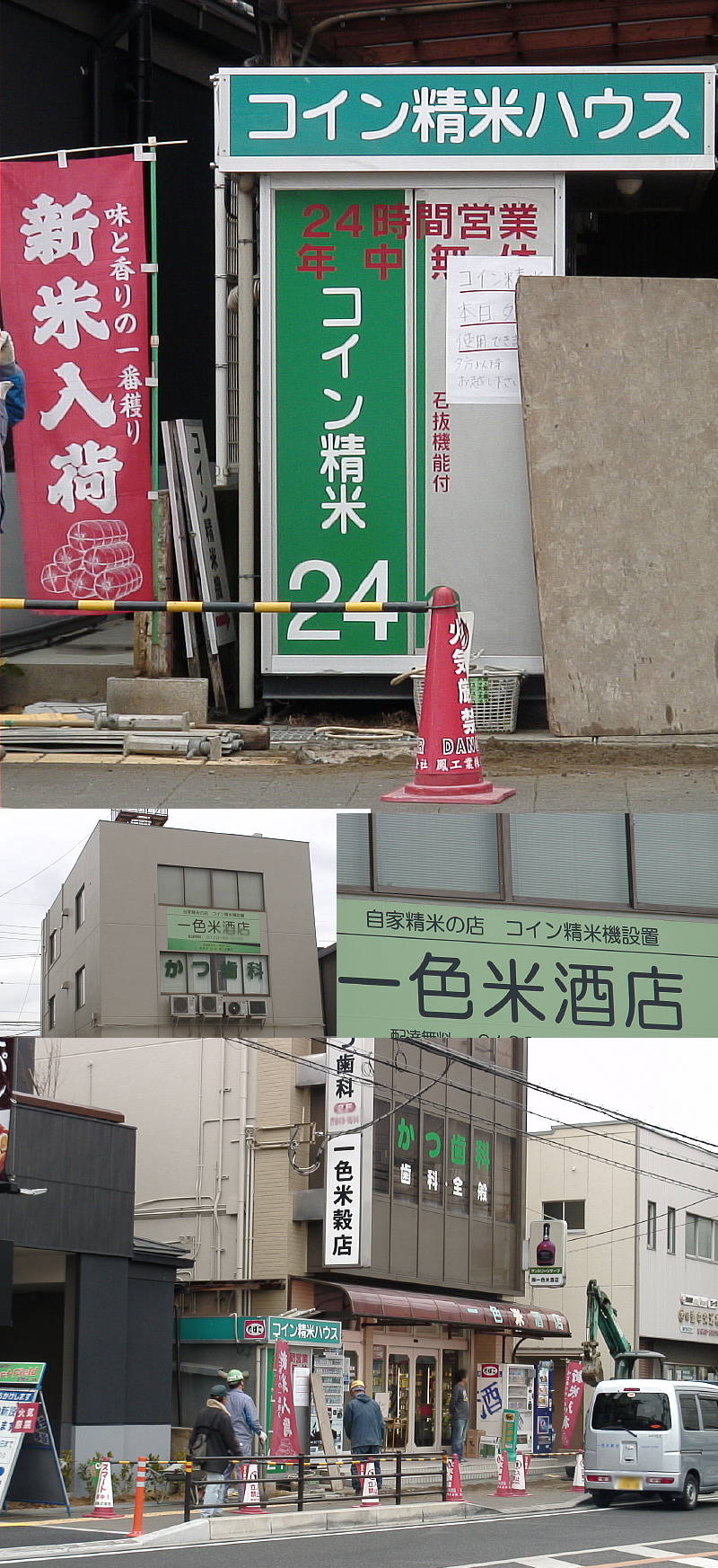 長年この道の前を通っていましたが…気づきませんでした。 精米機ありました。 でも、今日は目の前の道路工事のため、お休みでした。 精米は明日以降でお願いします。