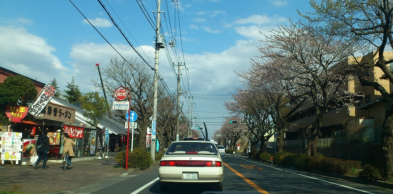 桜並木を撮ってきました。 これはイトーヨーカドーに向かう坂道、市民会館と警察の信号のちょっと手前の橋の上から新川方向です。 左のラーメン屋さんは、昔ミスタードーナツか何かの店だった場所です。 明日か明後日辺り満開になりそうな気配です(5日撮影)。
