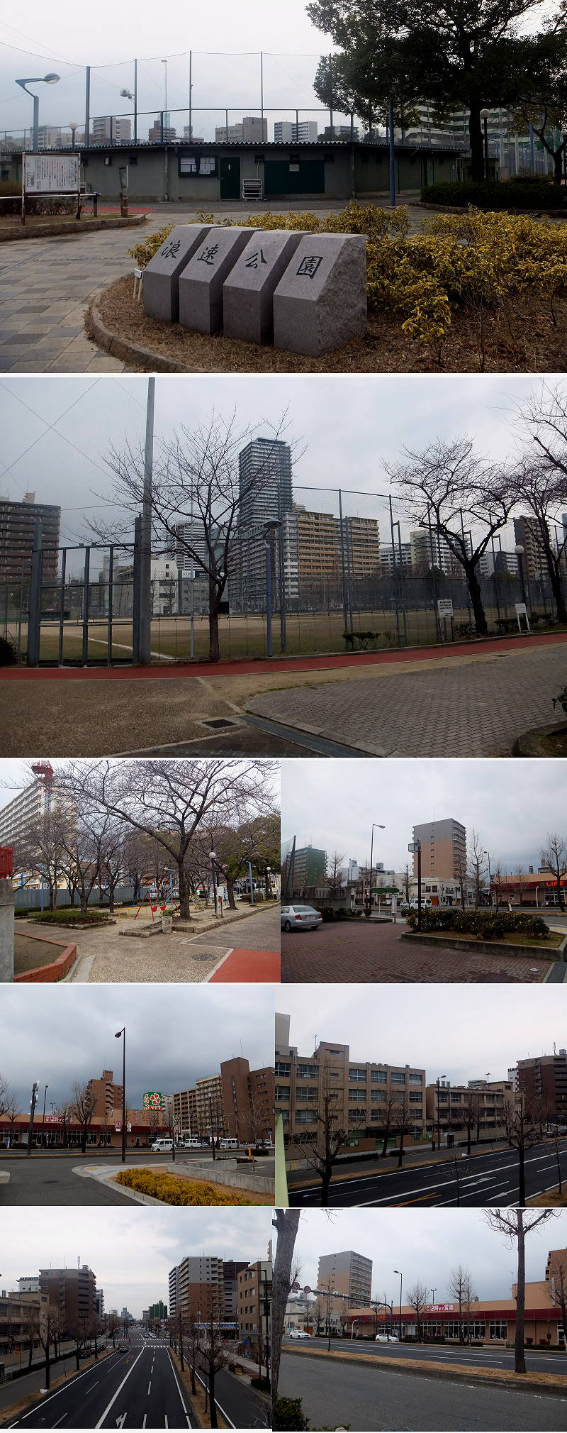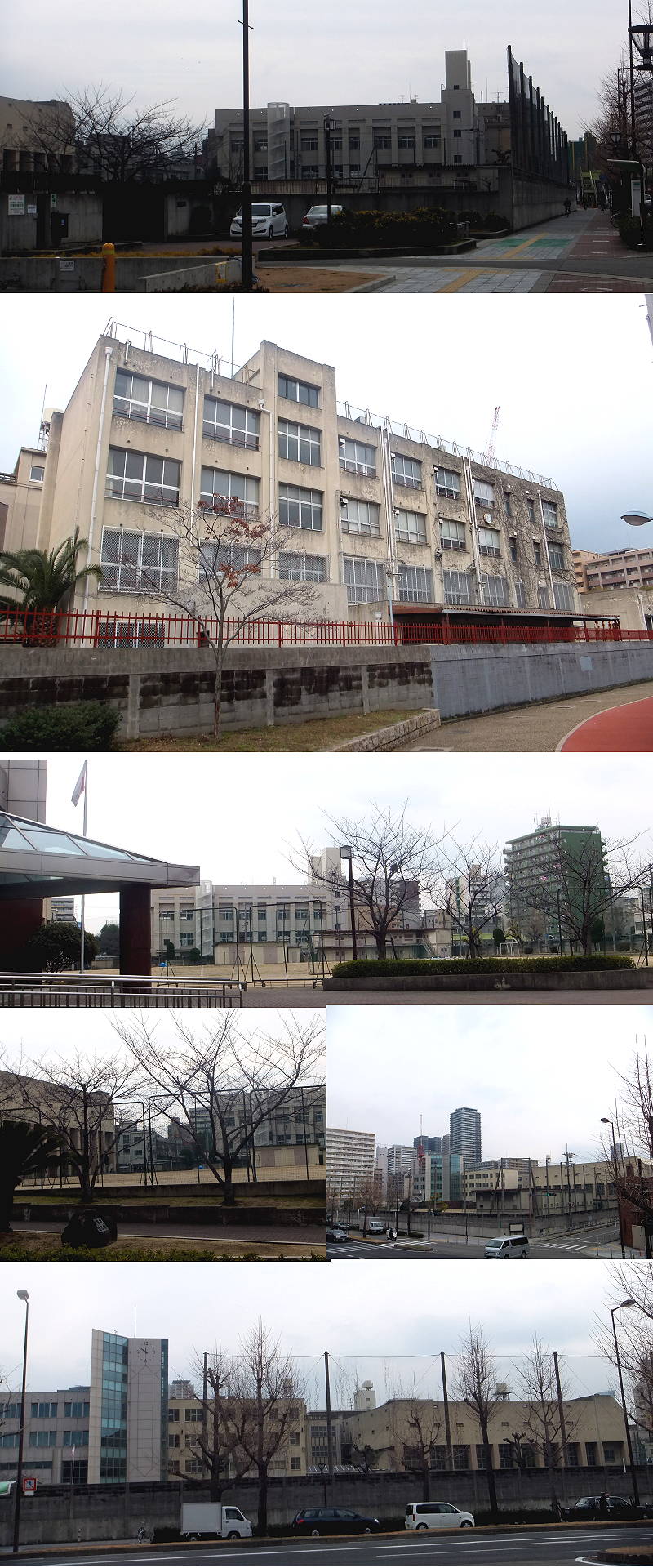 早速見てきて頂きありがとうございます。しかもご丁寧に沢山のアングルから撮って頂きとても感謝いたします。m(__)m 特に正門から見る校舎は全く変わっていて、別の学校のようです。また浪速公園の野球場は変わっていないように見えますが、周りは遊歩道のようなものができて綺麗に整備されていますね。 在校中はこの野球場で体育の授業や野球をして、よく先生や先輩にしごかれた事を思い出します。本当に懐かしいです。♪ この度は、ご丁寧に本当にありがとうございました。