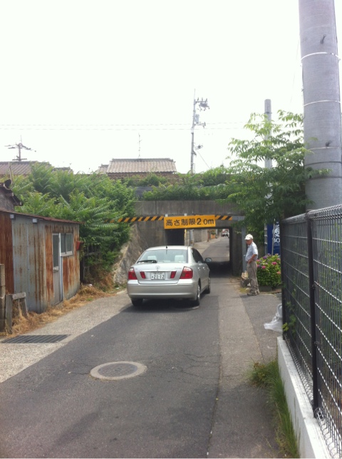 マルナカ側の入り口、朝夕はすれ違いのクルマと自転車、歩行者で修羅場になります。