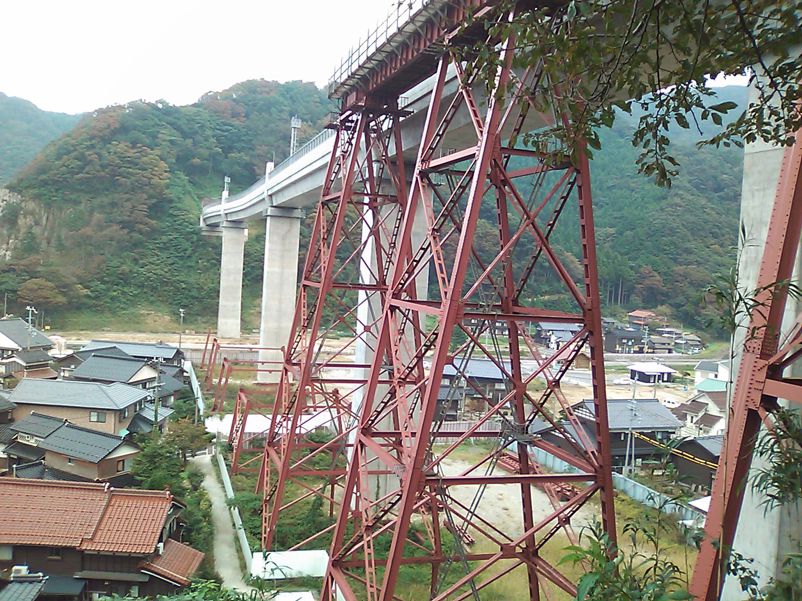 いつ頃かはっきりしないのですが(確か1~2年前) 餘部駅で下車した時の写真です。 橋はすでに新しい物に変わっていて、 以前の鉄橋は3分の1くらい残っていました。